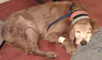 Vegas is home and recovering nicely. As you can see in the picture, he is wearing a stiff collar to keep him from licking his incision. He is not happy about the collar, but I explained to him that it is MUCH better than the cone of shame.
