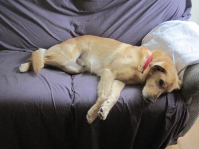 The unfortunate thing about this sweet boy is that Vince has heartworm and actually just had his round of treatments yesterday and today. I picked him after work today and since then he has done nothing but lay on the couch with me. He has no energy, just wants to cuddle and have his ears rubbed. The treatment has really taken a toll on this sweet boy as Vince is usually very active, running around the house with my slippers in his mouth and mouthing my hands or feet...which ever one he can get to first.