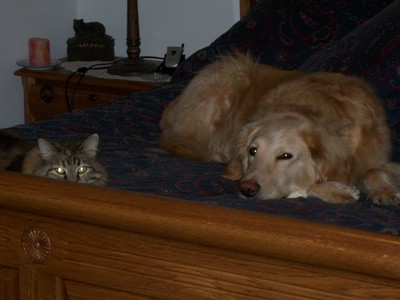 The previous owners reported a history of seizures brought on by stress, but is not epileptic. When I first met Willow, she was shaking in the back of the surrendering owner's car but have not seen her shake since then. I have not seen Willow around children yet, but she's done fine around men (as long as I am around). Due to the information provided by the previous owners, I am thinking that a quiet household without small children would be best. Willow does not seem to be timid in any way, and took a weekend ice fishing trip in perfect stride. Willow passed the cat-friendly test with flying colors; she looks at them but does not walk toward them at all (even when the cats test her by running by). Everyone is comfortable around each other; three cats and three dogs in perfect harmony.