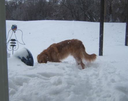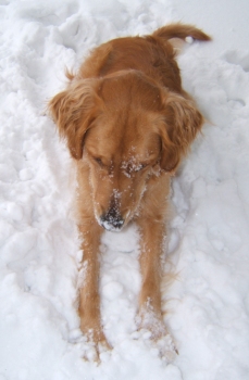 Well, a year has gone by since Woody has joined the E Family. He's a wonderful pup, and we love him dearly. He is a cuddler, is eager to learn and please, and just wants to be around you all the time. He is a bit naughty, though. He likes to take socks, take paper, and occasionally take shoes and "nibble" on them a bit. Of course, he is a typical puppy, and that kind of thing can be expected. He loves to play fetch out in the yard, LOVES the snow, and he also loves to play tug-o-war with Cody. It's hard to say how many ropes those two boys have gone through... they make the most out of them to say the least. He always has a look in his eye, whether it's mischevious or guilty depends on the day, and you know he's up to something. He hardly ever does anything really bad, though. He's made some new canine friends, too. Annean (aka Nina) is a Weimaraner pup about his age. We babysat her for a few days when her owner, one of my brother's friends, was out of town. He's also made friends with Rio, a 3 year old female Yellow Lab. She is one of the dogs out at the barn where I keep my horse. We haven't gotten the chance yet, but when things dry up and it's warm again I've been given the OK to bring him out so they can play. I'm still thinking about doing agility with him, maybe this spring. I think he'd enjoy it, and it'd put all his extra energy to good use. He's a speedster and has springs in his legs so we think he'd be good at it, too. I've attached some pictures of him to this message, and I think you'll enjoy looking at them.