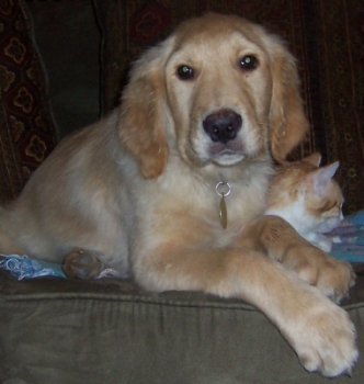 Wrigley is growing like a weed. Still the snuggliest, sweetest doggie ever. Never jumps up on the couch or on my bed. Has never chewed anything other than his toys and bones. Doesn't bark. Is VERY good around my small children. The only thing I have had to work on with him (other than getting him housebroken) is when I first get home, he is SO happy to see us that he jumps up on us...but I have been teaching him "down" and has done very well. After the initial excitement has worn off, he keeps his paws to himself. He is just SOOOOO loveable. Not too clingy, not too aloof. Just a perfect companion all around. Great around kids and cats and other dogs. My 4-year-old calls him our "cool dude dog". LOL!