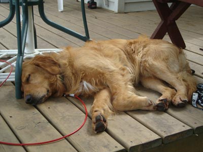 Yosef has done really well with the many family members visiting our house and up at our lake home. He just loves to be petted and will melt in your arms when you rub his ears and tummy. I just love the hugs he gives me many times each day. He usually has a toy or a nyla bone in his mouth. When ever we get ready to go outside we do a mouth check on him. Otherwise all of his prized toys would be left outside where we already have an ample supply of tennis balls.