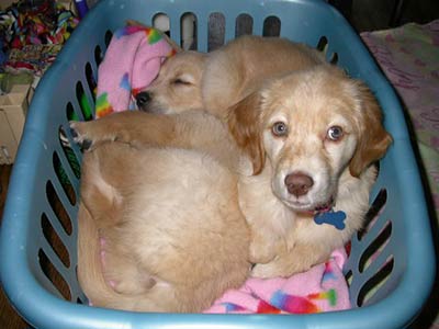 Well kid, I've got some bones to chew up before you get here, so I'd better get going... I think you're really going to like it here, and I've got lots of great stuff to teach you. I've played some pretty fun games this past year with all my foster brothers and sisters, but it'll be kinda cool to have another guy who sticks around and doesn't leave just as soon as I decide they're worth keeping around. Wait til I teach you the Lake Erie game... no, not the one you guys play now that involves potty in the house... that's just not cool, man... in this game you just try to see how much water you can splash out of the big water dish without actually drinking any, and you make the Great Lakes on the kitchen floor. Then mom comes along behind you with a towel and dries up all the lakes like some big natural disaster... it's such a fun game! Then there's the one where I pretend I'm King Kong or some big hairy monster, and every blade of grass in the yard is a person, and I just run around the yard pulling up clumps of grass.... I mean, people. As many people as I can get in one mouthful, and I shake them around, and then spit them out and move onto the next clump! It's so cool, because after playing this game for a while now, the "population" in our yard is really decreasing, it's like I'm taking over the world, dude! Mom doesn't seem to like that game much because for some reason we get muddier now that there's less grass, but hey, all the better for us man, do you even KNOW how many fun games you can play in the mud???