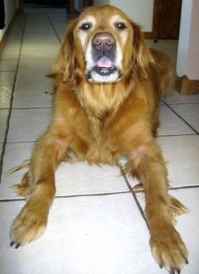 Zeus is a 12 1/2 year old BIG boy. If you want a living, breathing Teddy Bear to call your very own, this is the dude for you! Zeus is the original Velcro dog. He never leaves my side! He is a gentle giant. He's very tall and very long and wee bit on the stout side. His hips and shoulders are a little weak and sore from arthritis, and Zeus should really take off about 10-15# to get around a little easier. He's taking Rimadyl and Glucosamine and we've transitioned him to the same food we have our two Goldens on.