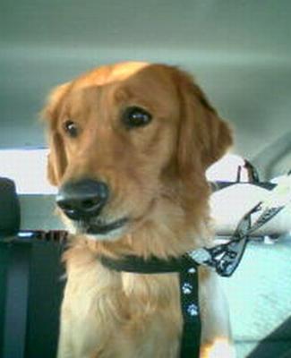 Here's what I know about him so far. He's a wonderful dog. That pretty much sums it up. Details? OK, well, let's start with the fact that he's beautiful and loving. Really, he's the sweetest thing this side of the Mississippi. He's completely housebroken, has free roam of the house during the day and is not destructive. He seems quite healthy. He knows his basic commands and LISTENS to them. He walks well on a leash and loves to go for walks. He rides great in the car. He's social and loves other dogs. He met our cat last night and seems hesitant to get too close to her, so he's SMART. He's used to living comfortably in a house, so he has great manners. We don't have kids, but word has it that he likes them a lot. He may be kind of big for really little kids, as he could knock them down, but we'll test that later with the neighbors. I gave him a bath yesterday, clipped his nails and cleaned his ears - he did great with all! Although when I was clipping his nails, he kept rolling over for a belly rub and even though I asked him to please hold still, he just couldn't contain himself, so this was a long process. Oh, and he LOVES to play ball - fetches it and brings it right back and drops it at your feet to throw again. His adoptive family will need to commit to regular "ball games" with him.